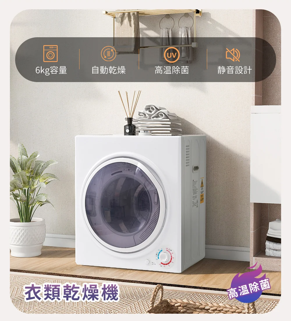 6キロの衣類乾燥機。静音運転と省エネ設計で、夜間や一人暮らしでも使いやすいモデルです。