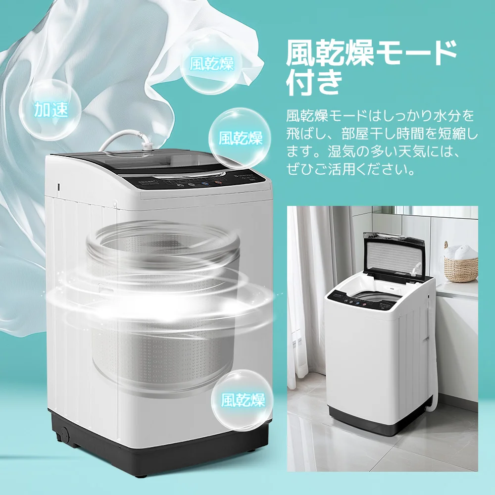 梅雨の時期や花粉症の季節に、部屋干しの時間を短縮する風乾燥モードを搭載。湿気や生乾きの臭いを防ぎます。一人暮らしの方にもぴったりなサイズで、少量の洗濯物でも効率よく洗えます。